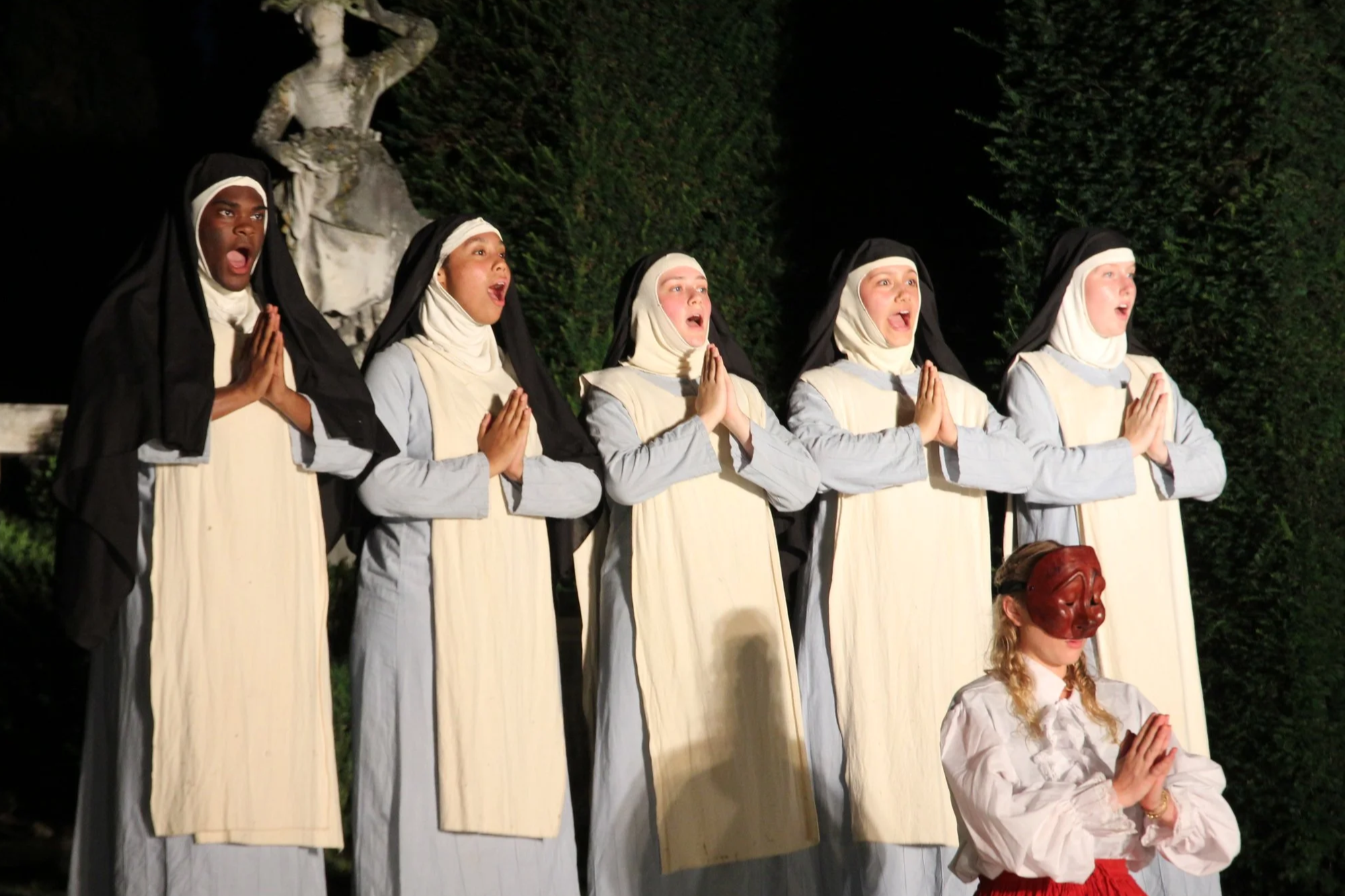 The Doctor in SPite of HImselfThis past summer, I had the pleasure of studying abroad in Florence with NYU Tisch, practicing the art of Commedia Dell’Arte. We had the priviledge to use masks made by Donato Sartori. It was a fabulous 6-week program studying the physicality that makes these amazing masks come to life. I created the character “Nonna” pictured on the left. She was a deaf, mostly blind, grandma with a long-lost dream of becoming a famous singer, and instead was forced to care for her insane family.